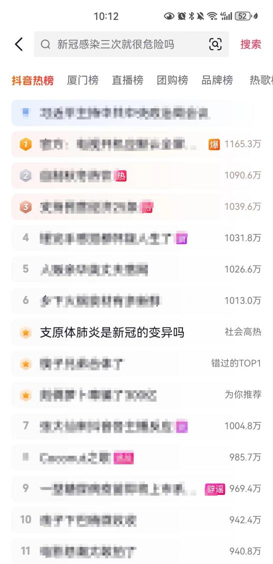 图:“支原体肺炎是新冠的变异吗”话题登上抖音社会榜TOP15