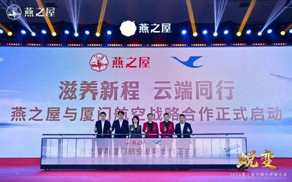 独行快,众行远。与各领域佼佼者强强联手,一直是燕之屋持续蜕变升级的重要战略。作为大会的一项议程,燕之屋与厦门航空战略合作在会议期间正式启动。双方将依托同属厦门本土企业的地缘优势,共同探索航空服务与健康产业的跨界融合路径。厦门航空文化传媒科技公司书记颜坤玲,燕之屋创始人、董事长黄健,副董事长郑文滨,执行董事、总裁李有泉等双方领导出席仪式。