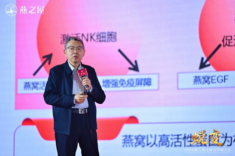 燕之屋作为燕窝行业“领头燕”、中国燕窝行业首家上市企业① ,从东方滋补文化的传承者,到全球健康产业的践行者,一步步,向新蜕变。大会伊始,燕之屋创始人、董事长黄健发表开场致辞,他从科学定义、线下重塑、资本赋能出发,强调燕窝行业空间广阔,燕之屋未来可期。他表示:“2026年是国家‘十五五’开局之年,也是燕之屋下一个轮回的开局之年,过去燕之屋做好产品、做大市场,未来要做深价值、主动破局,拥抱变化,用科学重新定义燕窝行业。燕之屋将以硬核科研、强势线下、稳健资本,全力回报每一份信任,让我们心往一处想、劲往一处使,抓住行业发展机遇,完成这场蜕变与跨越,共同奔赴燕之屋更加辽阔的未来。”