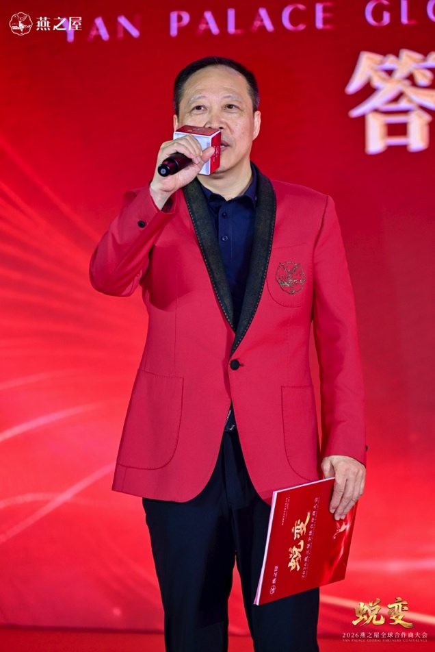 燕之屋以蜕变回应时代,以初心滋养世界,这份跨越二十八载的坚守与跃升,同样离不开合作商伙伴的并肩同行、风雨同舟。燕之屋创始人、董事长黄健在答谢晚宴致辞中向在座合作商伙伴、嘉宾朋友真诚致谢,并举杯祝酒“为我们的线下,再一次的雄起,再一次的腾飞,干杯”,与在座嘉宾共同祝贺“蜕变”2026燕之屋全球合作商大会圆满成功。