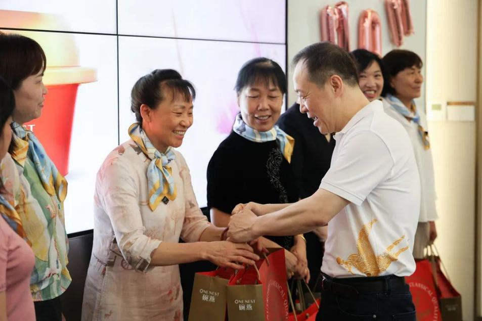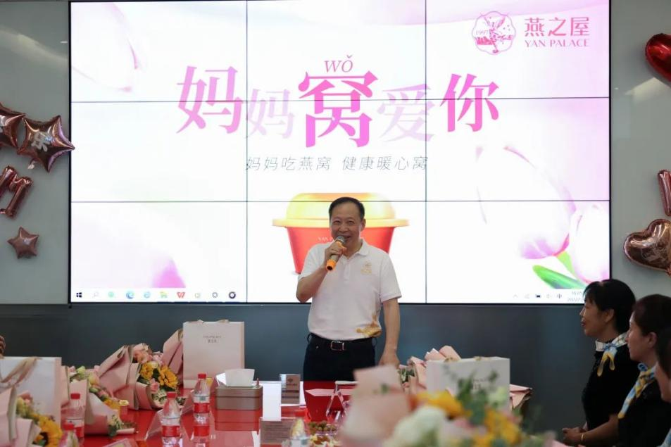 在活动的最后,燕之屋创始人、董事长黄健出席发表致辞,并为各位员工妈妈送上伴手礼——燕之屋尊享款碗燕,黄健说道:“各位伟大的妈妈,下午好,非常高兴,也非常欢迎你们来燕之屋。”他表示,:“大家是上天送给母亲的礼物,也是公司宝贵的财富,感谢母亲们含辛茹苦的培养,为燕之屋输送优秀的人才。”